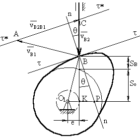 Точка В принадлежит толкателю, который повора - чивается вокруг оси С, т.е. т.В