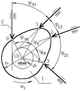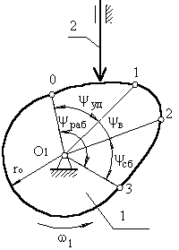 в фазе сближения – ψсб.ψудал + ψвыс + ψсб = ψраб – рабочий угол профиля кулачка.