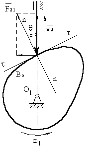 звена (толкателя) и реакцией, действующей с ведущего звена (кулачка) на